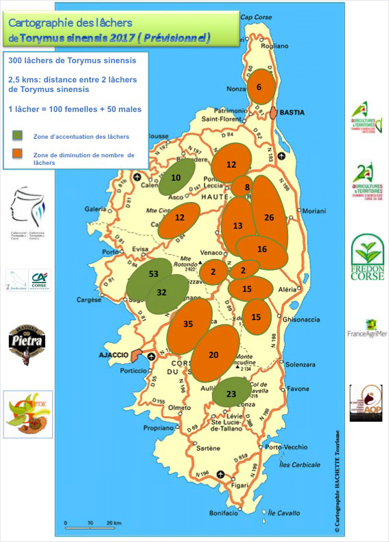 Organisation des lâchers de Torymus Tinensis | Pratiques à adopter après un lâcher | Cartographie 2015