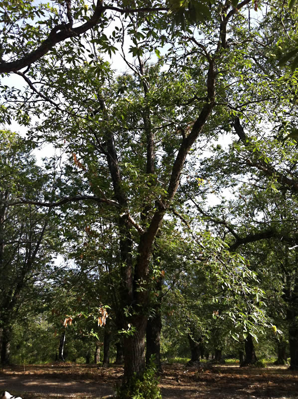 Feuillage clairsemé   Ambiance générale d'un arbre impacté par le cynips   Ambiance châtaigneraie cynipsée